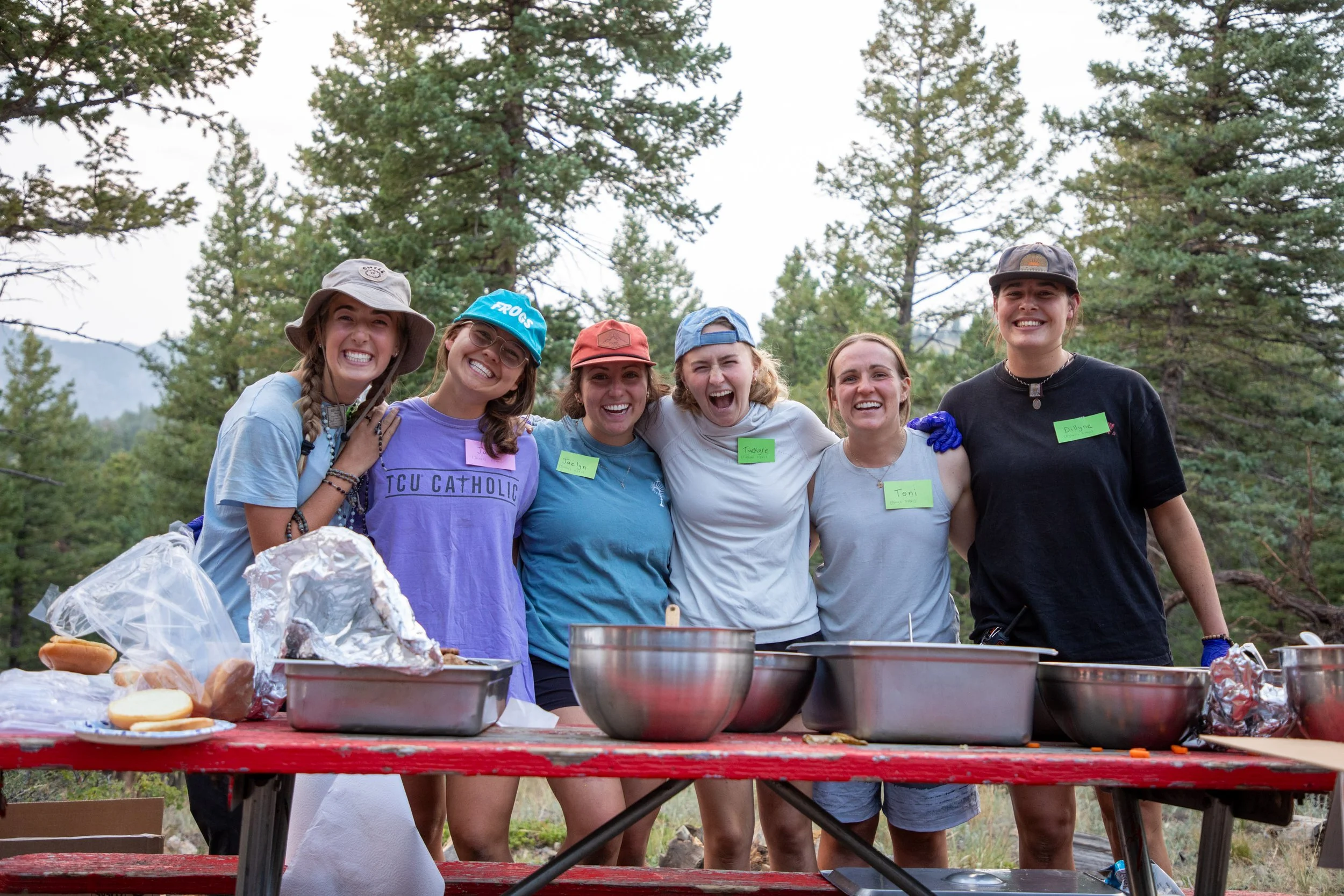 Camp Wojtyla staff prepare all food for all Basecamp programs in an outdoor kitchen. We are approved by and follow the guidelines laid out by the Colorado Department of Health. Campers joining us for Alpine and Wilderness will dine at tables under the big tent, in their small groups, alongside others participating in the same program. For Outpost campers, food prepared in our outdoor kitchen is transported up to the Outpost for a more rugged dining experience. Backpackers will share their own unique experience— Instructors will teach them about food preparation in the Backcountry, and they’ll help prepare their own “camp” meals!