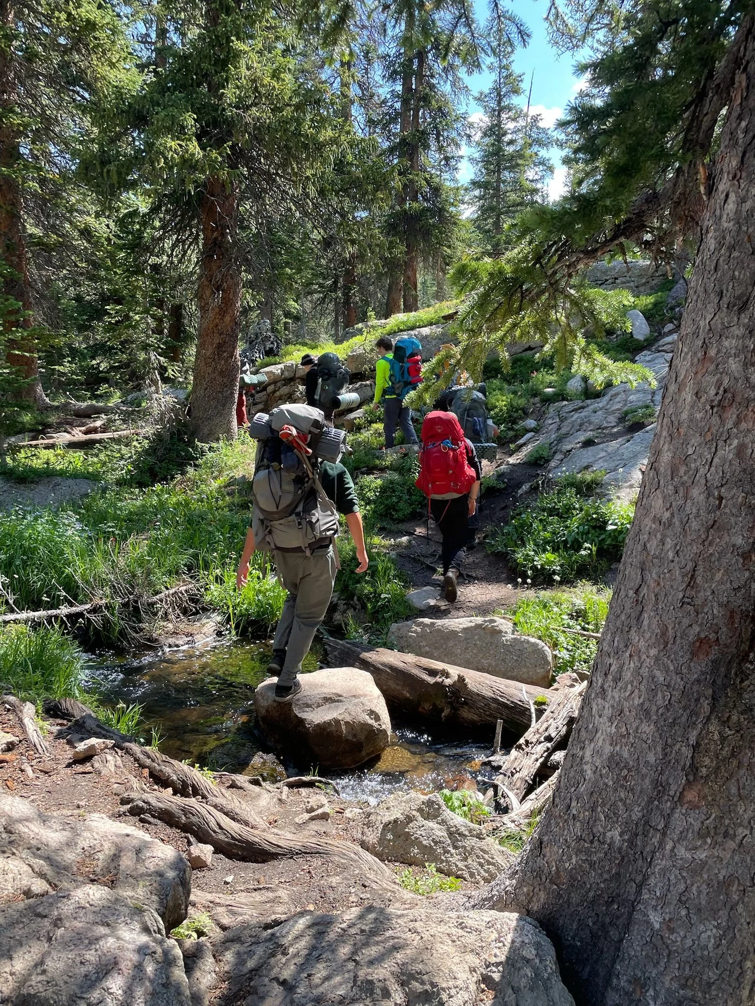 The trail might be smooth one day and rocky or steep the next. Campers may hike off-trail, cross rivers, or climb over boulders—all with their packs on. Instructors will guide and support campers every step of the way.
